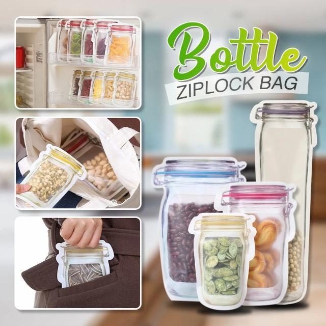 Now you can save a significant amount of space in the kitchen & fridge, keep your snacks neat & organized with the all-new Reusable Mason Bottle Ziplock Bag.