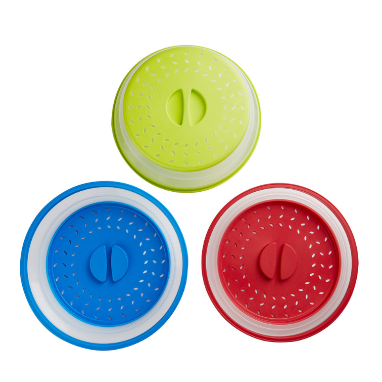 TPR+PP material combinationFolding function design:Flexible and durable, Not easy to damage.Convenient storageMulti-function: Dust cover, Microwave oven to prevent splatter cover, Drain fruit plate.Can cover food, dustproof, heat preservationCan be used as a drain basket to clean vegetables and fruits.The microwave oven is heated to cover. Prevent oil or soup from splashing.
