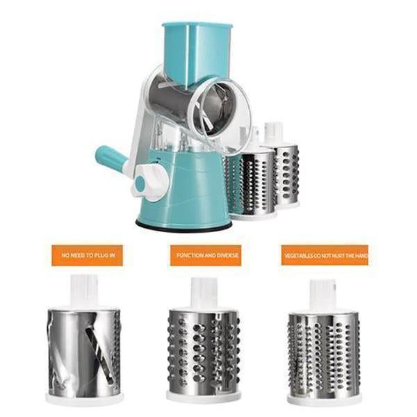 - MULTIPLE FUNCTIONS IN ONE TOOL - This round drum slicer has 3 easily interchangeable drum blades for different cooking choice, including fine, coarse grating/shredding, and slicing